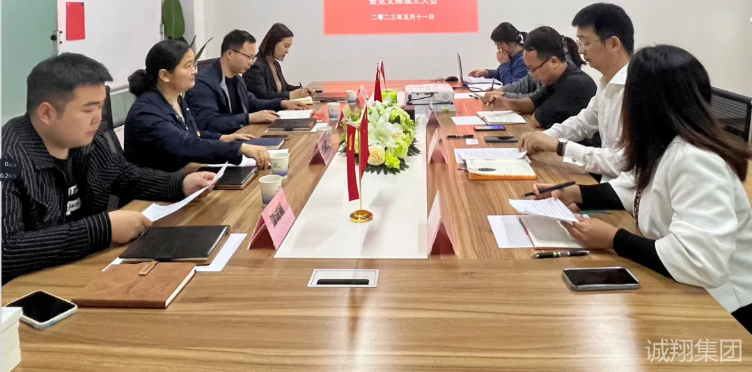 此次会议,诚翔集团董事长王子翔、总工单朋、质量负责人张月琴、集团子公司碧清环保副总经理李莉及集团党员们共同见证了诚翔集团支部委员会的成立。